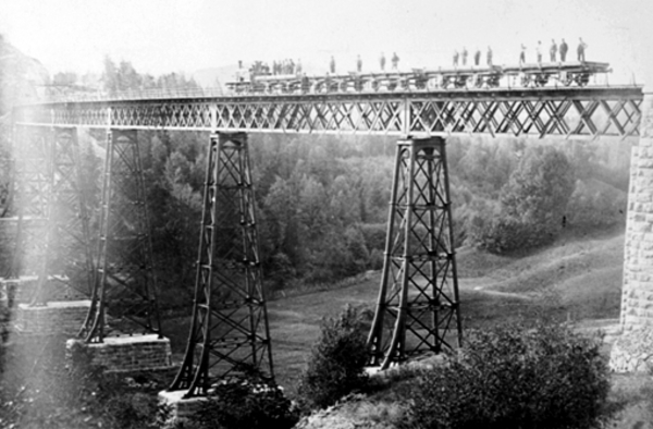 brua over Sarpsfossen. Disse bruene var konstruert av jern, og det var blitt foretatt